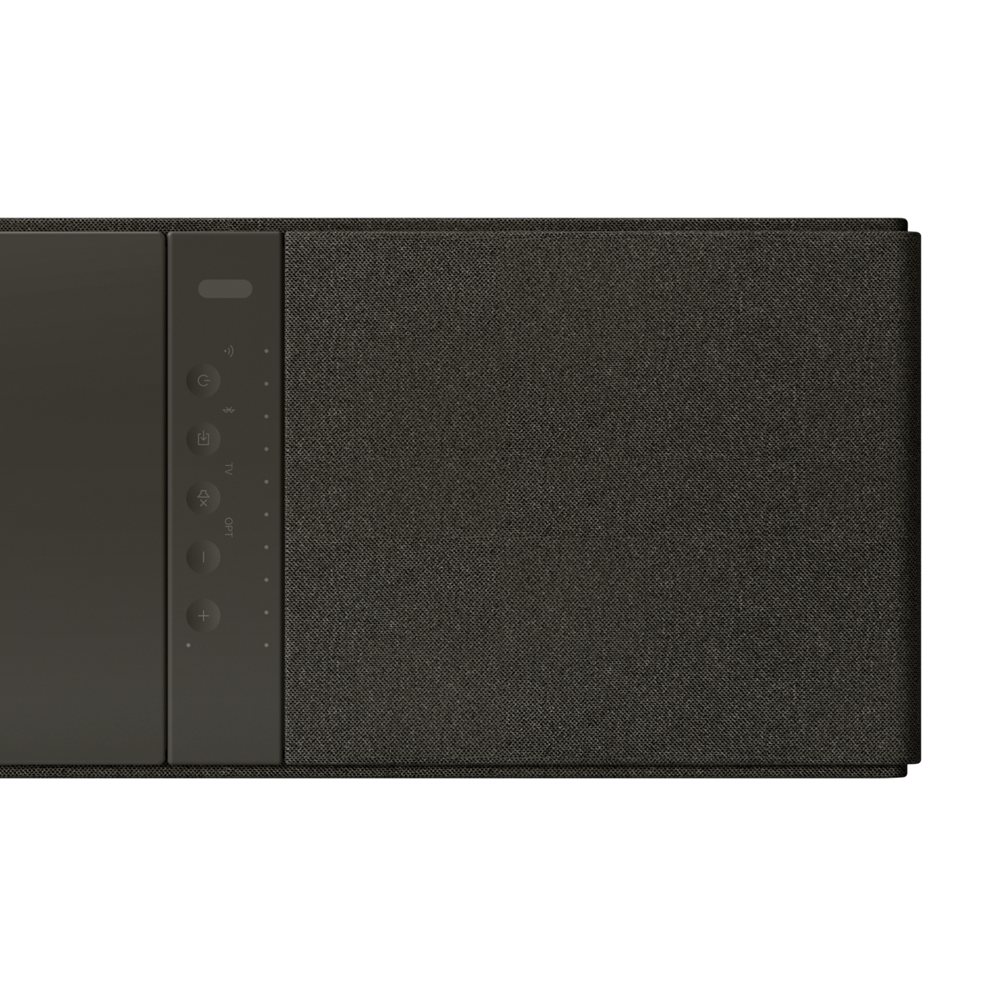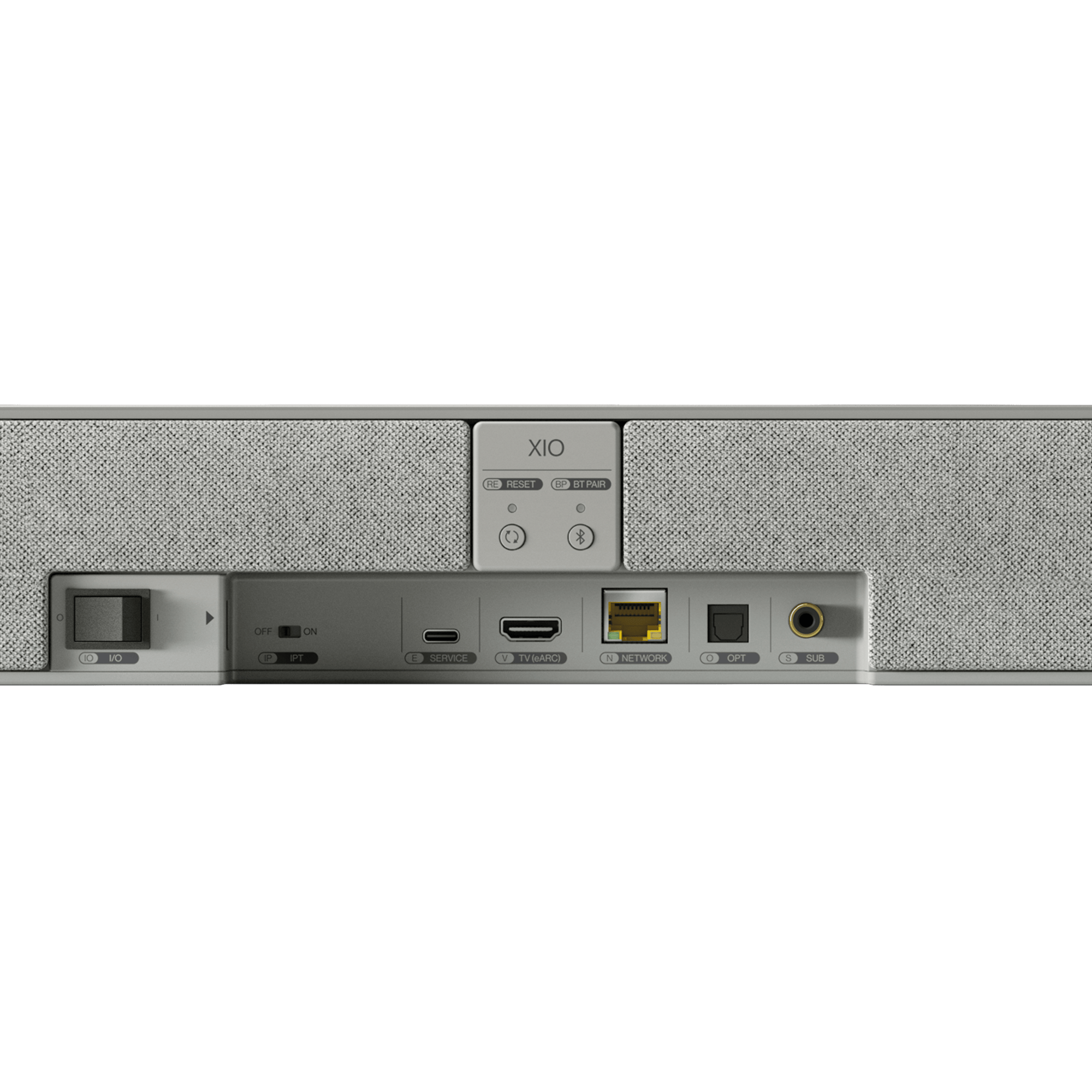 4. With a modern design, the XIO soundbar boasts a sleek, contemporary look that complements any space. The soundbar features a premium grille fabric and an aluminum top panel that not only enhance its visual appeal but also contribute to its durability and functional elegance, drawing inspiration from contemporary interior design and architecture.